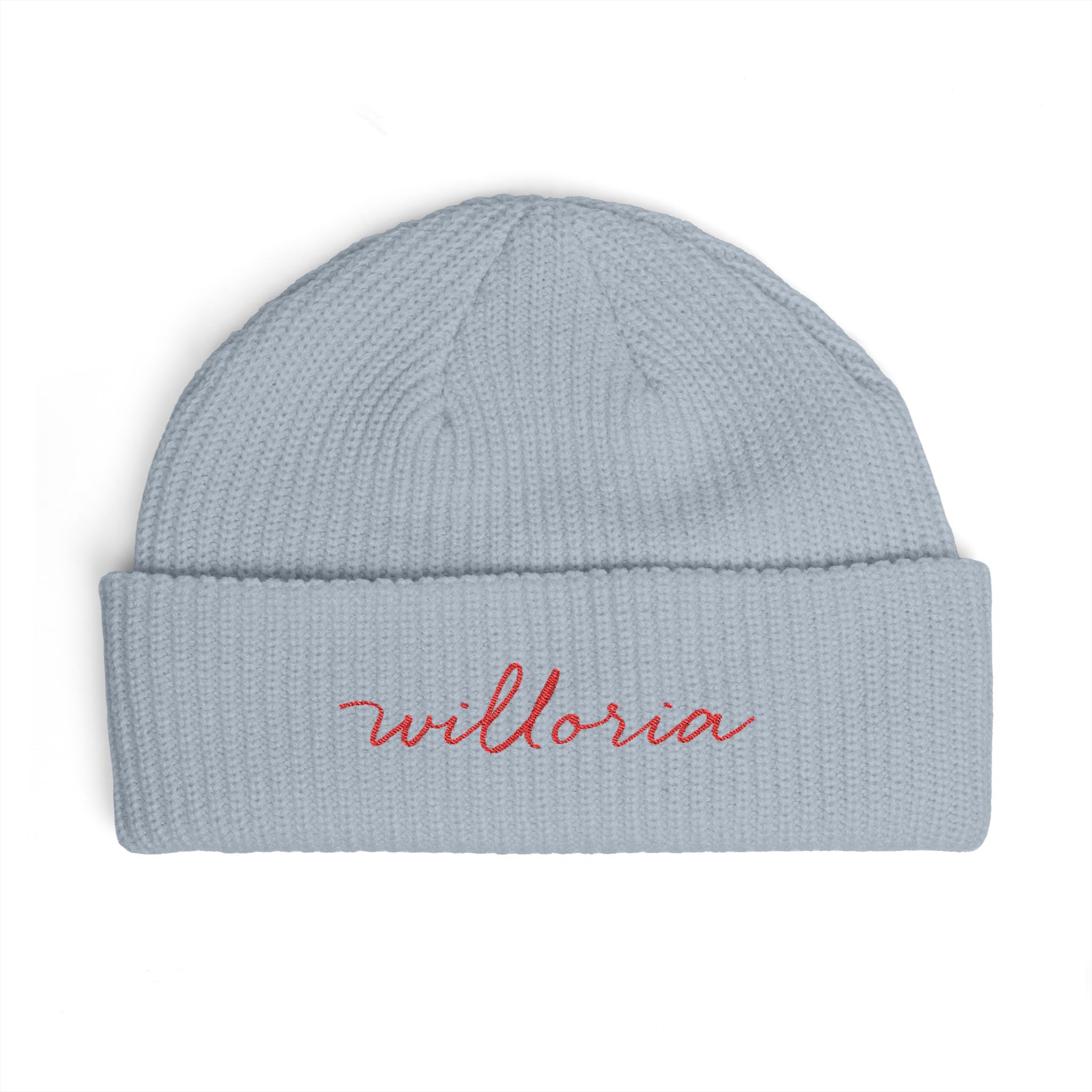 Be the first to review “Cuff Beanie — Embroidered “willoria” Knit Hat”